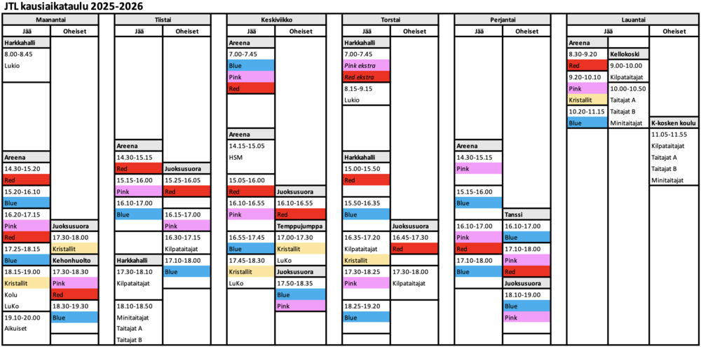 Kausi alkaa maanantaina 11.8. oheisen aikataulun mukaisesti.